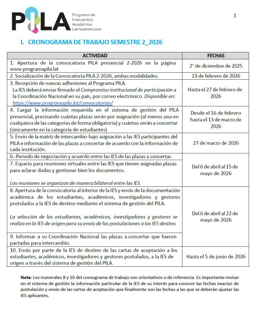 Instruções para o Programa de Intercâmbio Acadêmico LatinoAmericano
